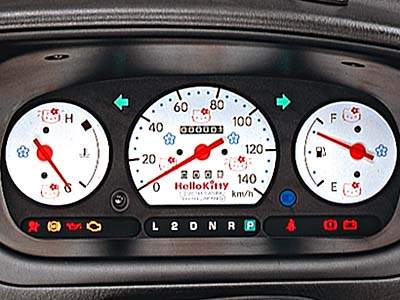 Check out the Hello Kitty themed meter panel.