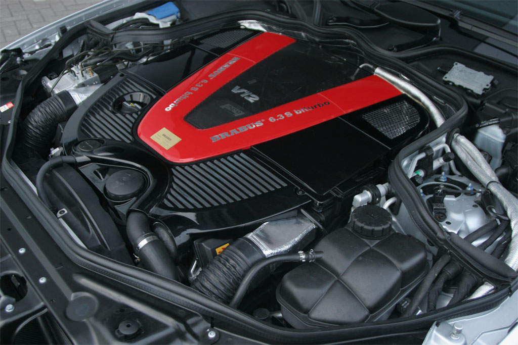 The Brabus Rocket is based on the Mercedes Benz CLS four-door coupe. This engine comes from the Mercedes Benz SL600 which originally had 5.5 litres displacement. It has 500hp at 6000rpm and 800Nm of torque. Brabus replaced the crankshaft, increased the bore and put new forged pistons into the engine. Intake and outlet valves in the cylinder head are also optimized and new racing camshafts are installed.
